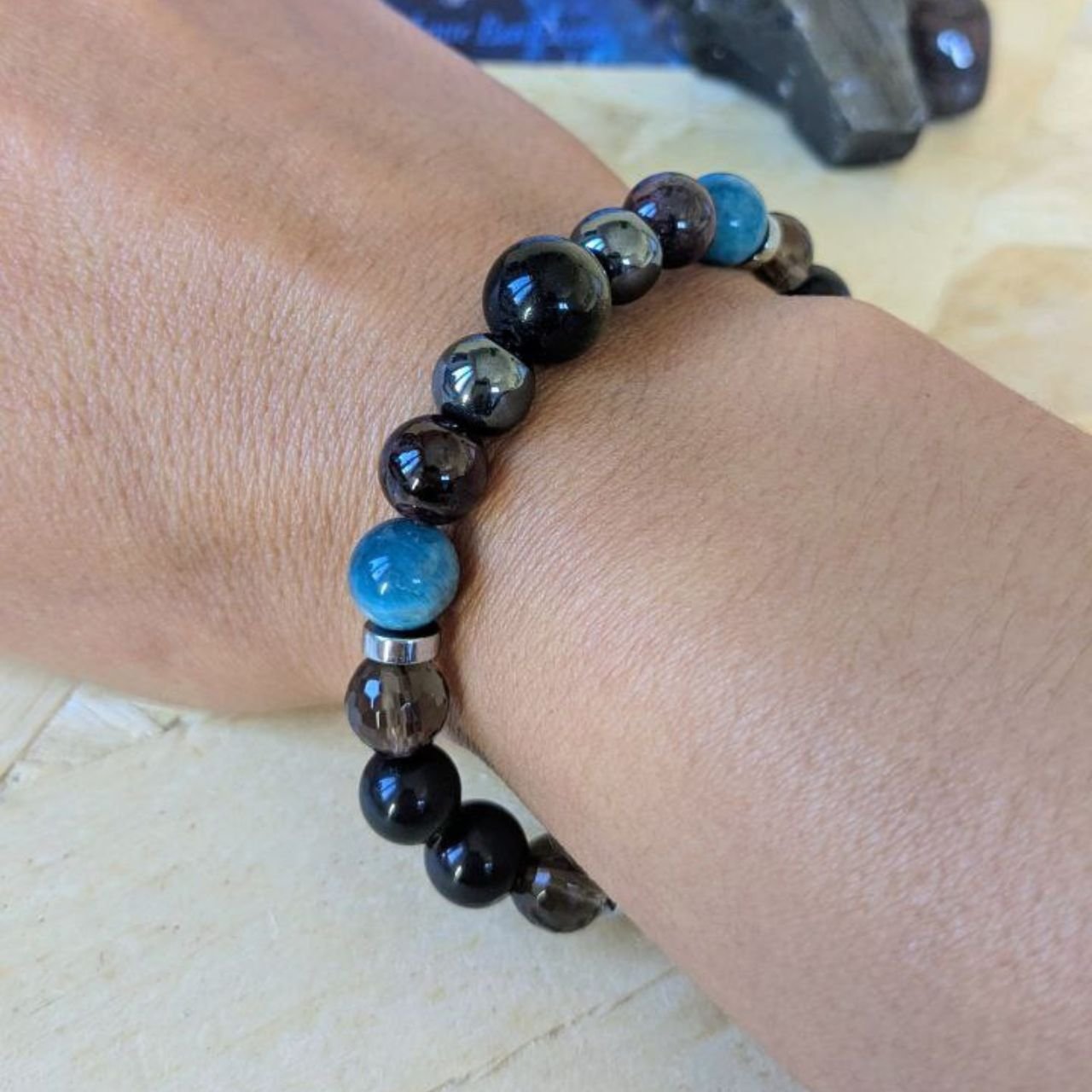 - Tienimi lontano da detersivi o solventi chimici perché alcune pietre potrebbero perdere di lucentezza (malachite, pietra lavica e selenite sono porose e assorbono tutto!). Quindi, toglimi prima di fare la doccia e mentre fai le pulizie. Potrai indossarmi subito dopo.