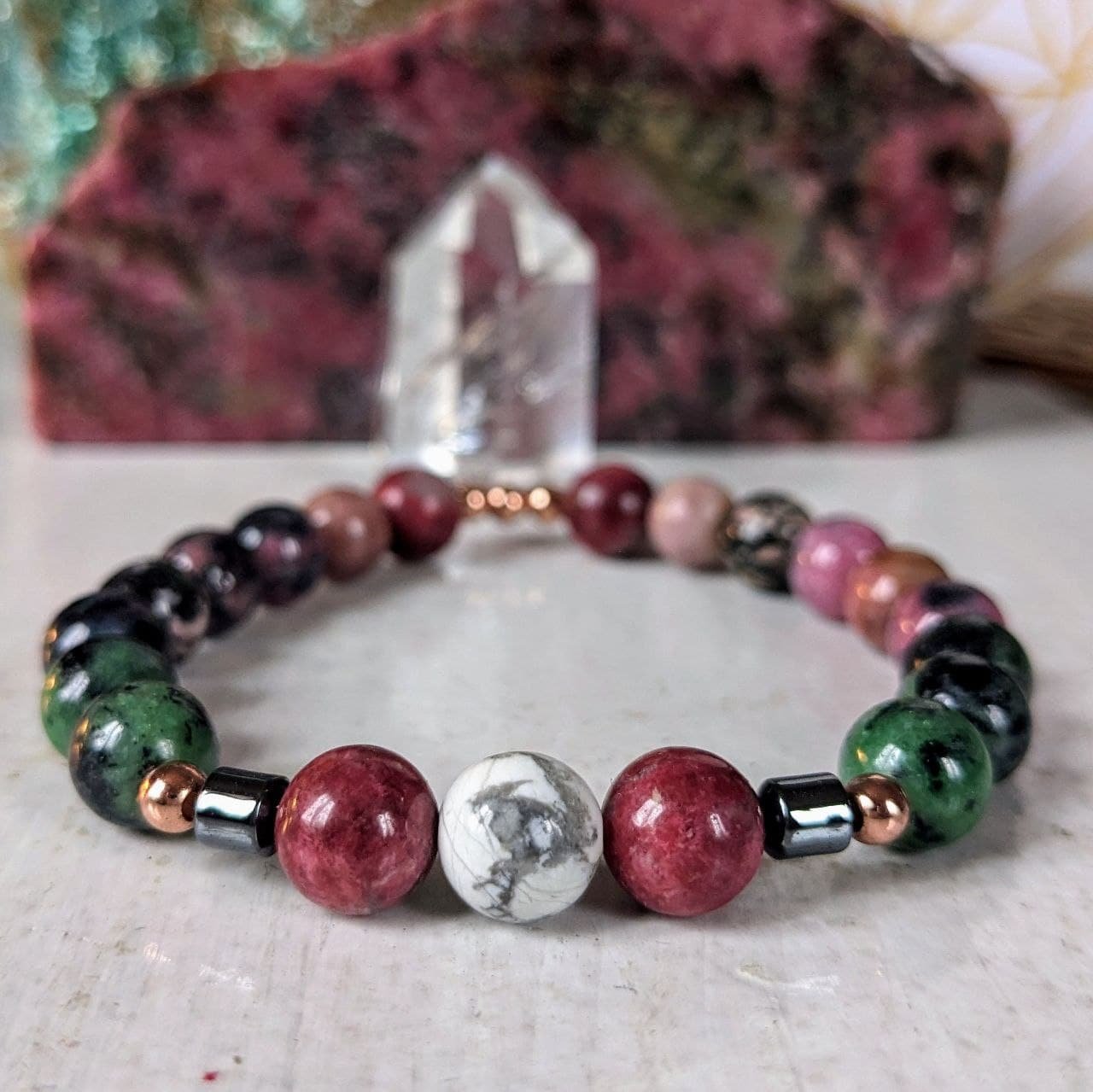 Ho visto questo braccialetto sul profilo Instagram di Creativamente Benessere e non ho resistito e me lo sono regalato. Ho amato subito i colori e la scelta delle pietre e quando l’ho ricevuto ho capito di aver fatto la scelta giusta.