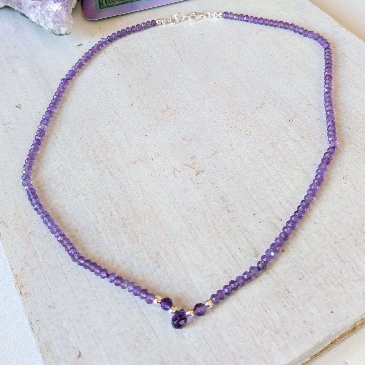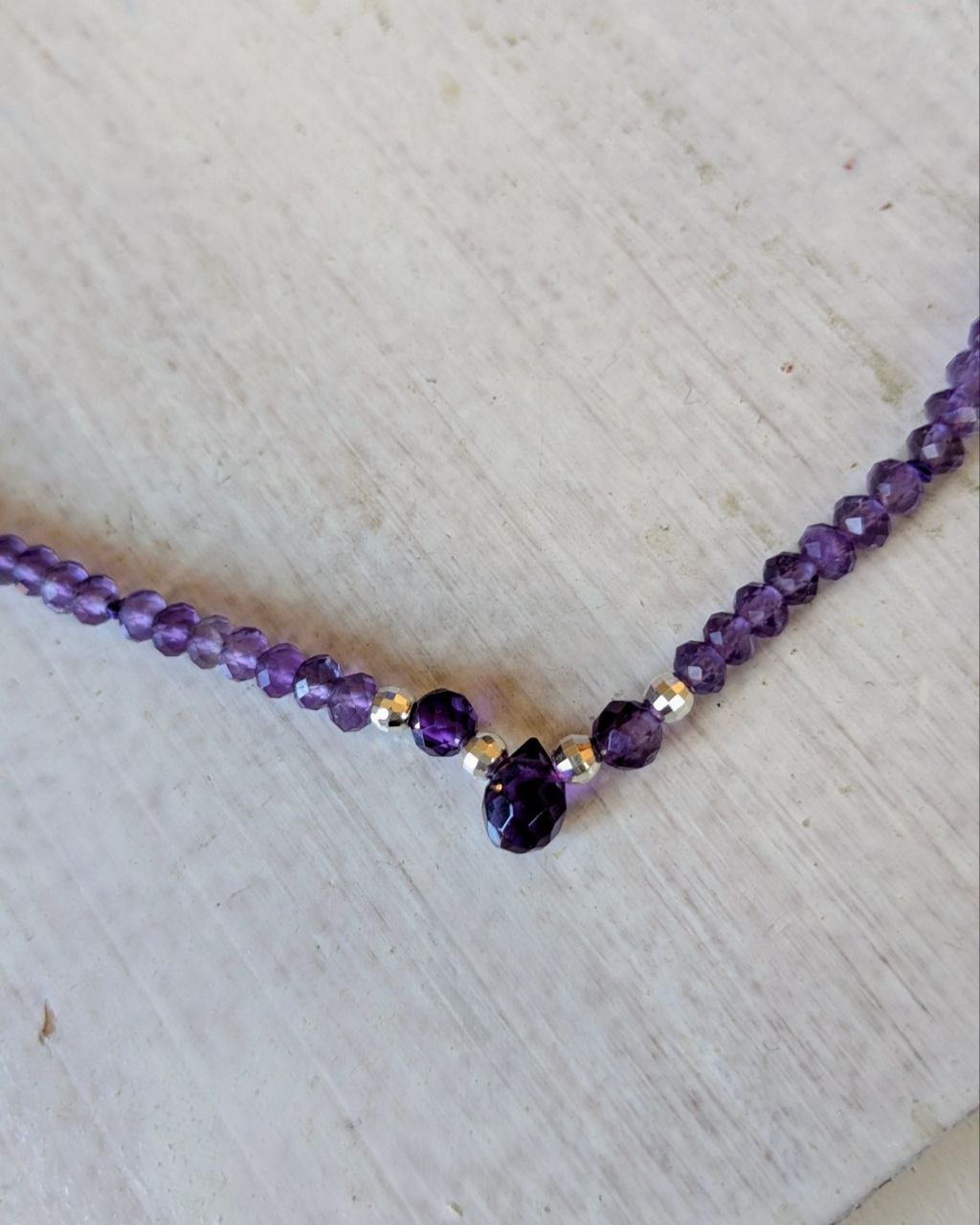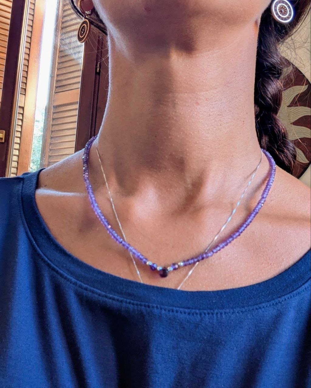 Collana artigianale realizzata con Ametista naturale, pietra simbolo di spiritualità, trasformazione, amore, compassione e libertà.